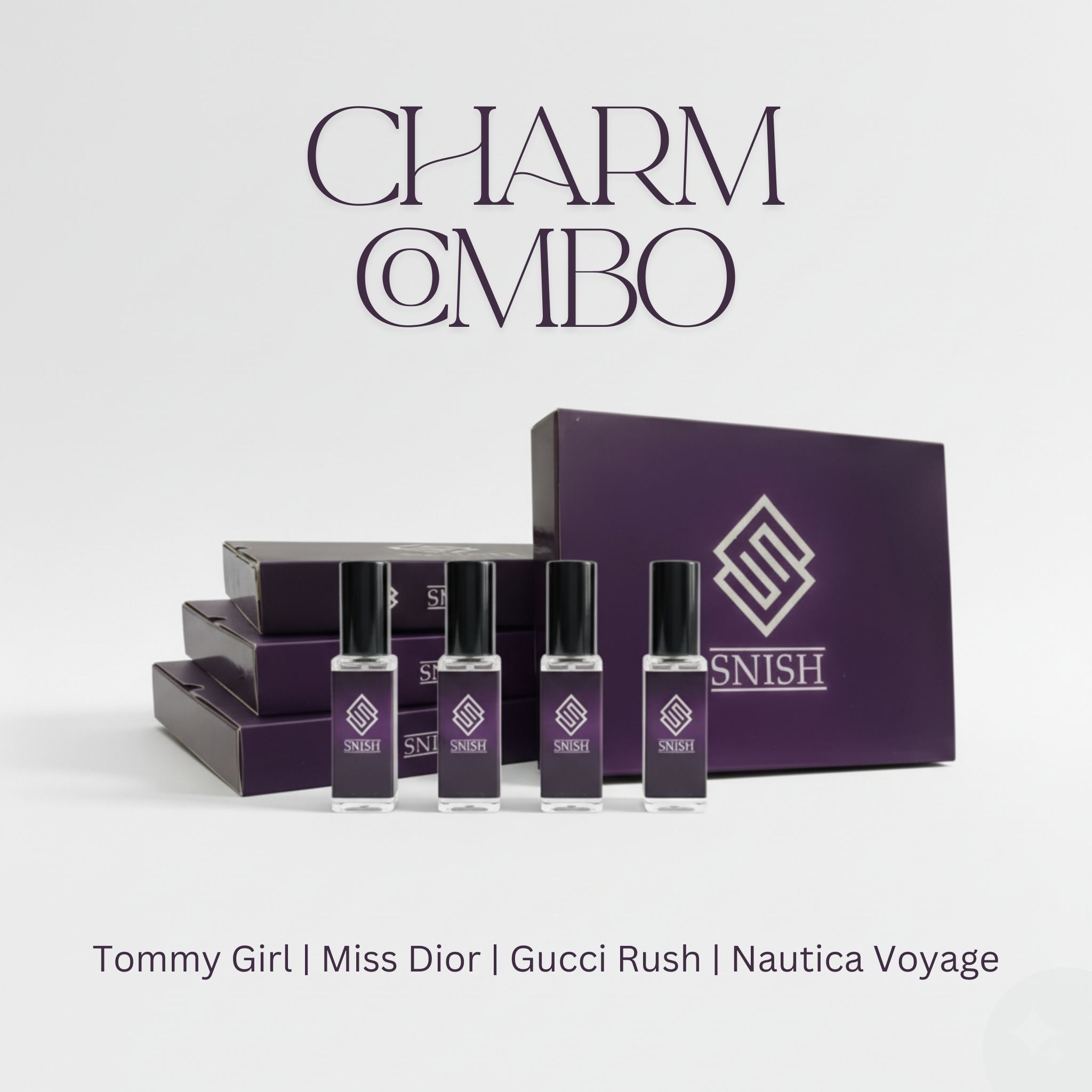 Charm Combo হলো সেইসব ফ্র্যাগরেন্স লাভারদের জন্য, যারা খুঁজে বেড়ান সতেজতা, রোমান্স আর এনার্জির একসাথে মিশ্রণ। Tommy Girl, Miss Dior, Gucci Rush এবং Nautica Voyage—এই চারটি আইকনিক নাম আপনার স্টাইলকে করবে আরও ক্যাপটিভেটিং আর ইউনিক।